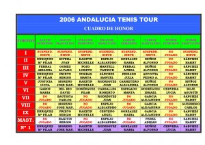 En el Cuadro de Honor adjunto se pueden consultar los jugadores (masculinos y femeninos) más destacados, por categorías, del 2006 Andalucía Tenis Tour.